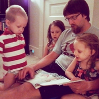My husband arrives home around 5:30 and “Happy Hour” commences. Everyone rushes to greet our hero. The kids take turns crawling on daddy and telling him what they learned that day while I enjoy some solitude in the kitchen. We eat together as a family between 5:30 and 6 each evening.