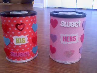 We also went to a Valentine's party with the moms group I organize and all the kids got to make their own mailbox for the valentine's exchange. Here are theirs, I helped them out as you can see. I think we will make a list similar to the gift I made for my hubby & I and pull one out for both of them each week also. They'll have things on the paper like: read me my favorite book, go pick 1 item out at the dollar store, paint a picture with me, etc.